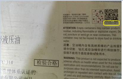 (3):在图3油桶上的生产日期和批号必须与图4上的质量合格证上的生产日期和批号也一一对应。