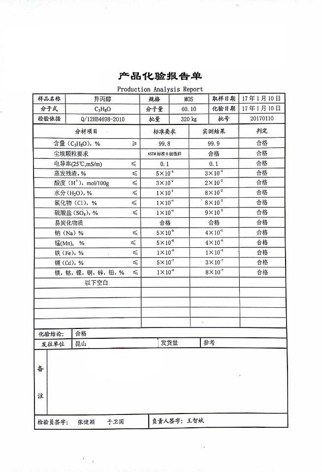 MOS级异丙醇化验报告